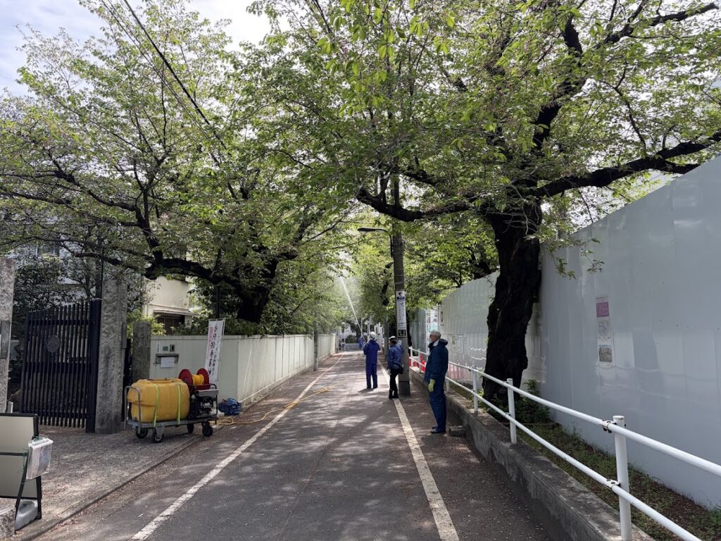 西福寺、旧駒込フラット沿い、駒込小学校に薬剤散布。